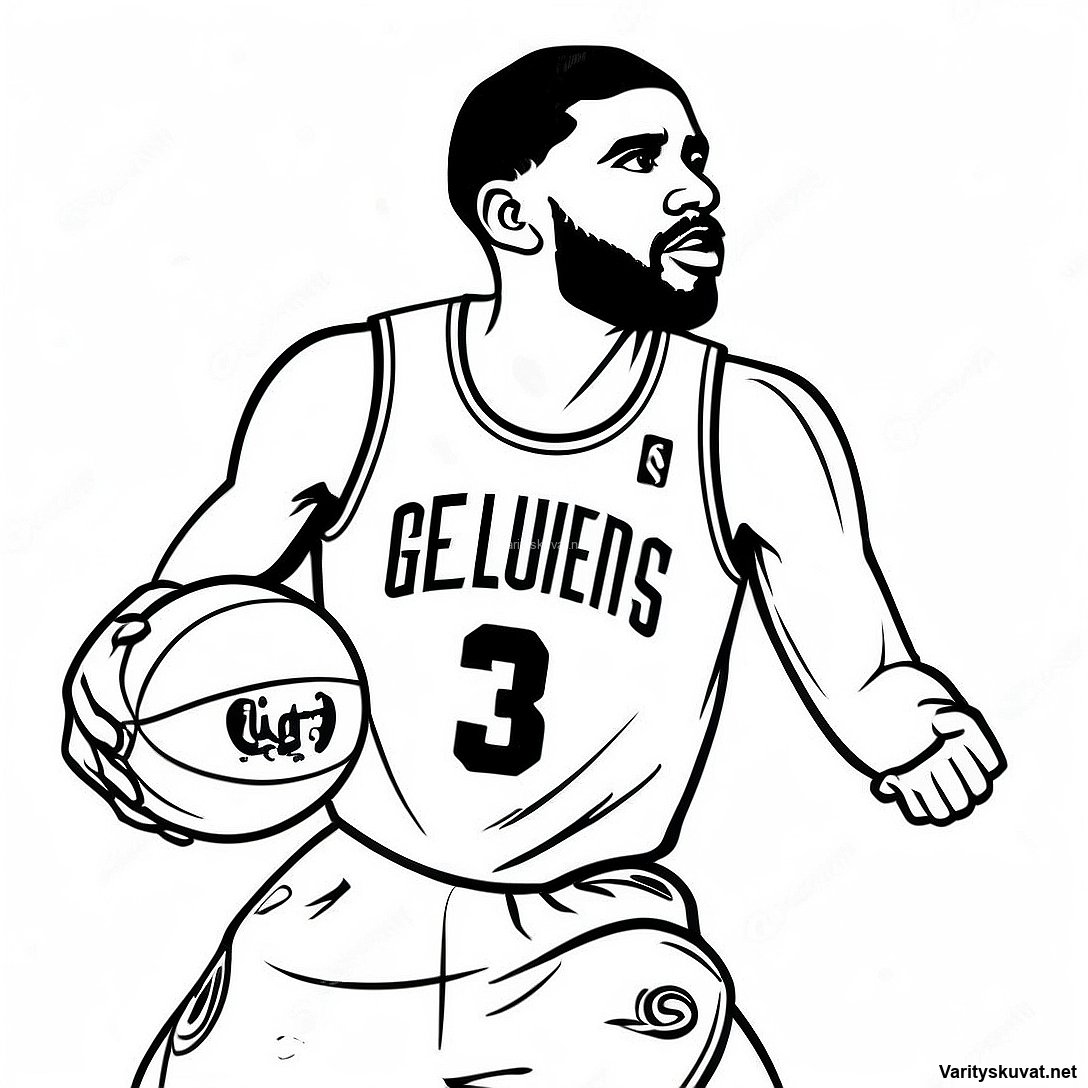 Lataa tulostettava PDF Kyrie Irving Heittämässä Koreja Värityskuva