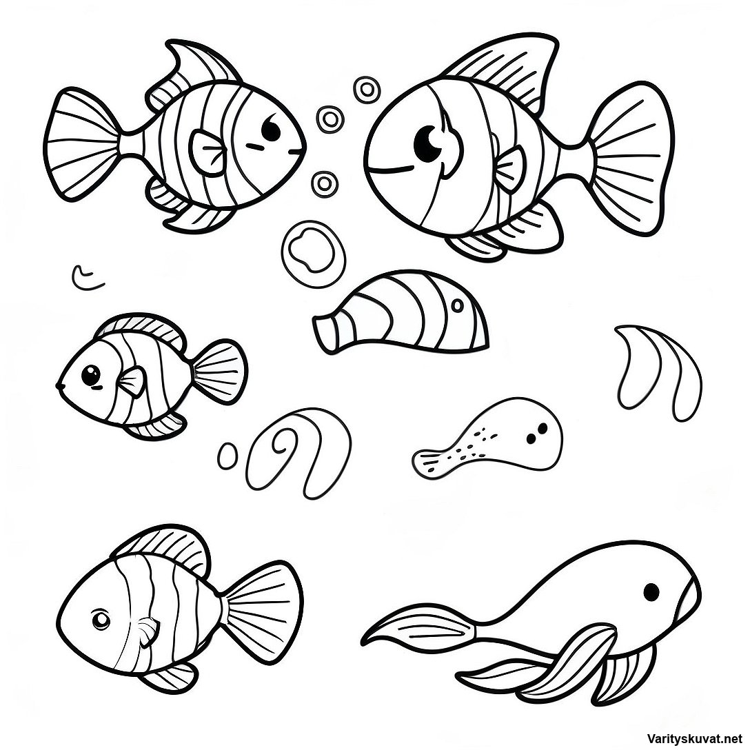 Lataa tulostettava PDF Leikkisä Käänteinen Värityskuva Vedenalaisista Olennoista
