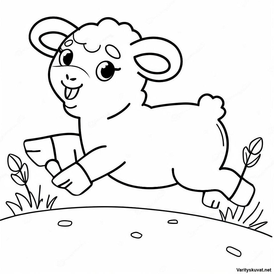 Lataa tulostettava PDF Leikkisä Lammas Hyppäävä Värityskuva