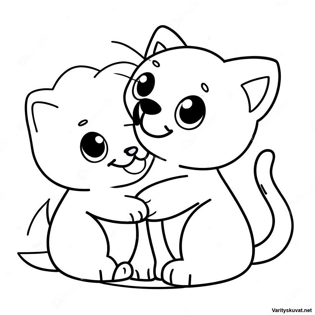 Lataa tulostettava PDF Leikkisä Pentu Ja Kissanpentu Värityskuva