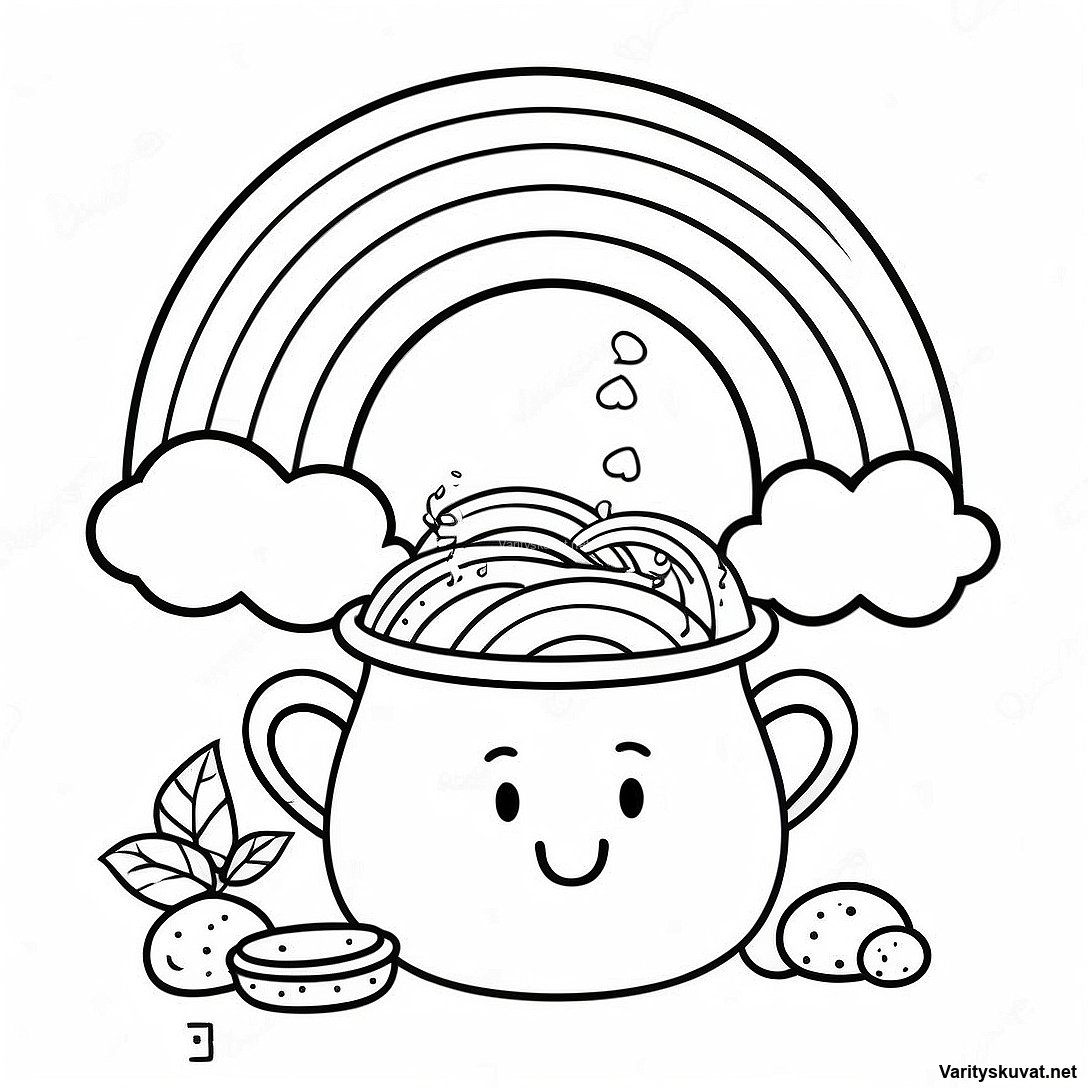 Lataa tulostettava PDF Leikkisä Sateenkaari Kultapadan Kanssa Värittämiseen