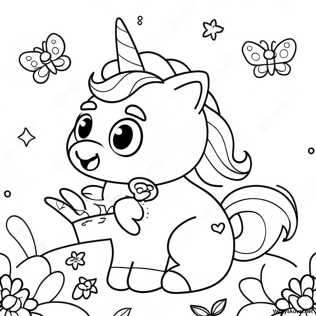 Leikkisa Yksisarvinen Kissa Perhosten Kanssa Varityskuva 11343 886