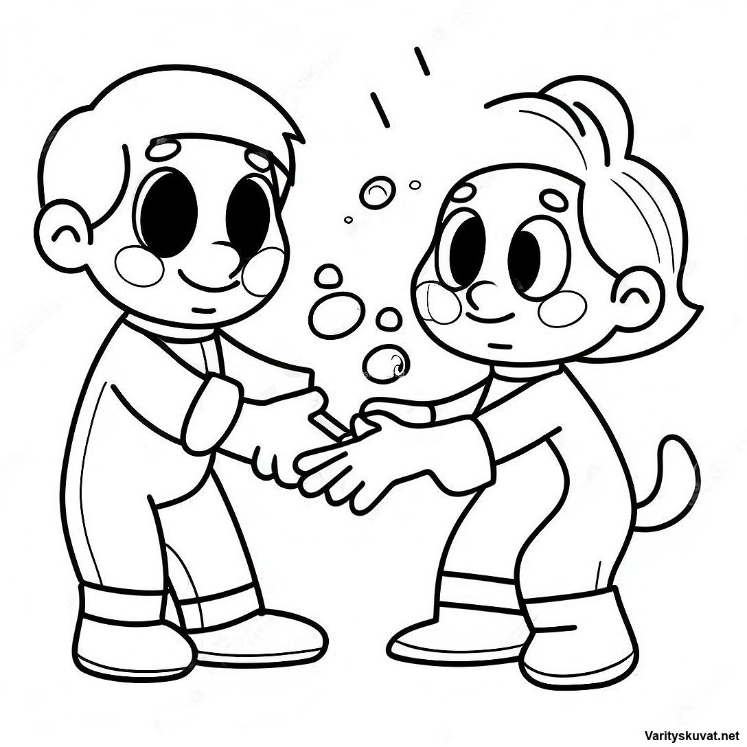 Lataa tulostettava PDF Leikkisät Hahmot Käsienpesussa Värityskuva