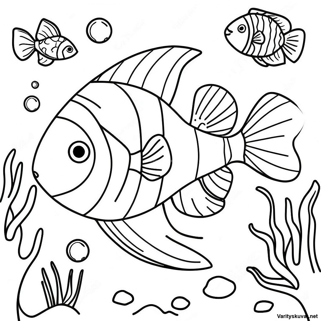 Lataa tulostettava PDF Leikkisät Kalat Koralliriutalla Värityskuva