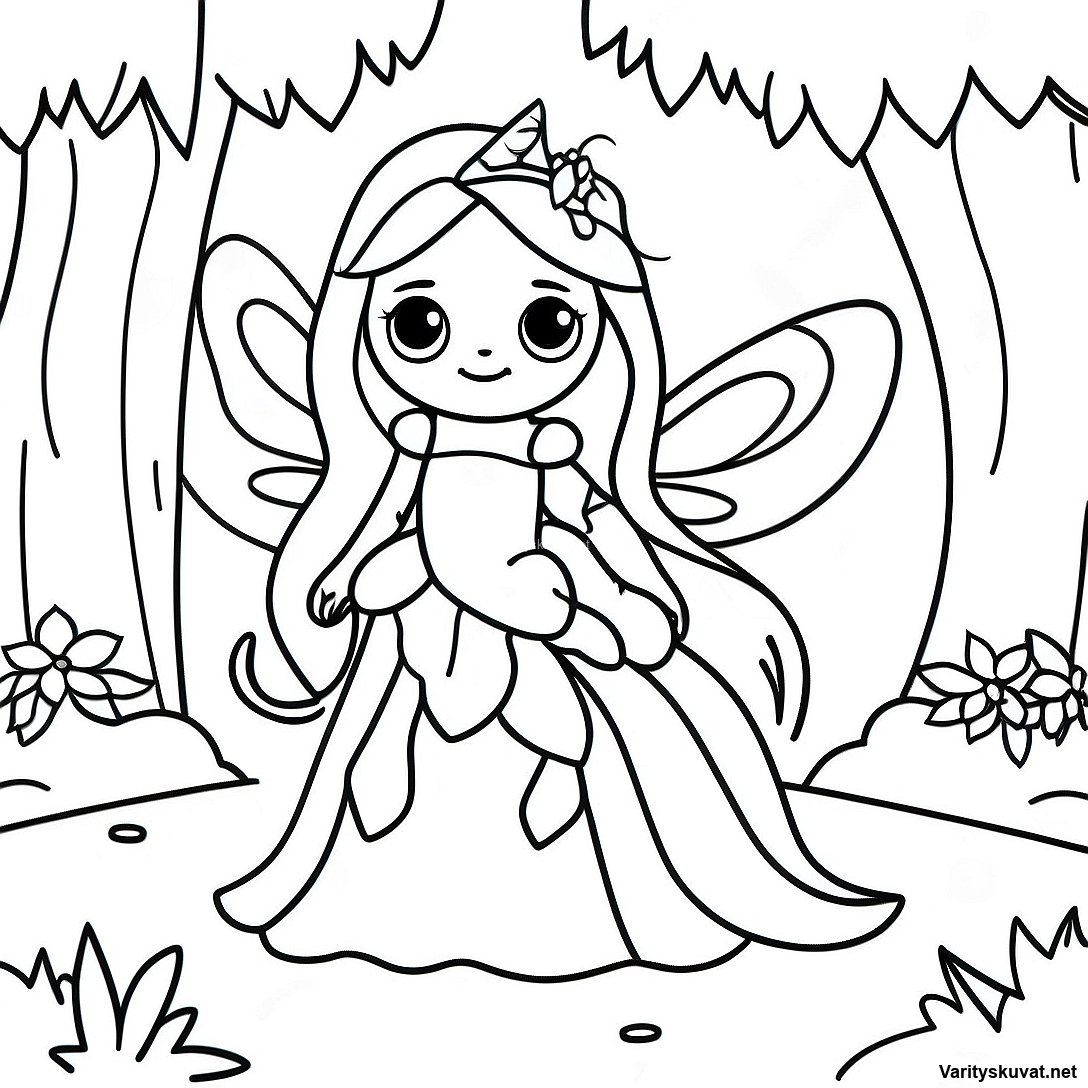 Lataa tulostettava PDF Lumoava Keiju Metsässä Värityskuva