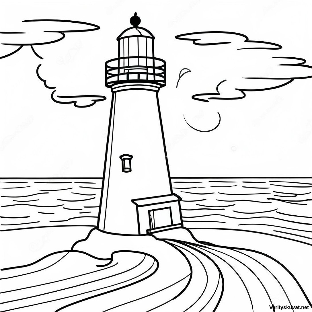 Lataa tulostettava PDF Majesteettinen Majakka Auringonlaskussa Värityskuva