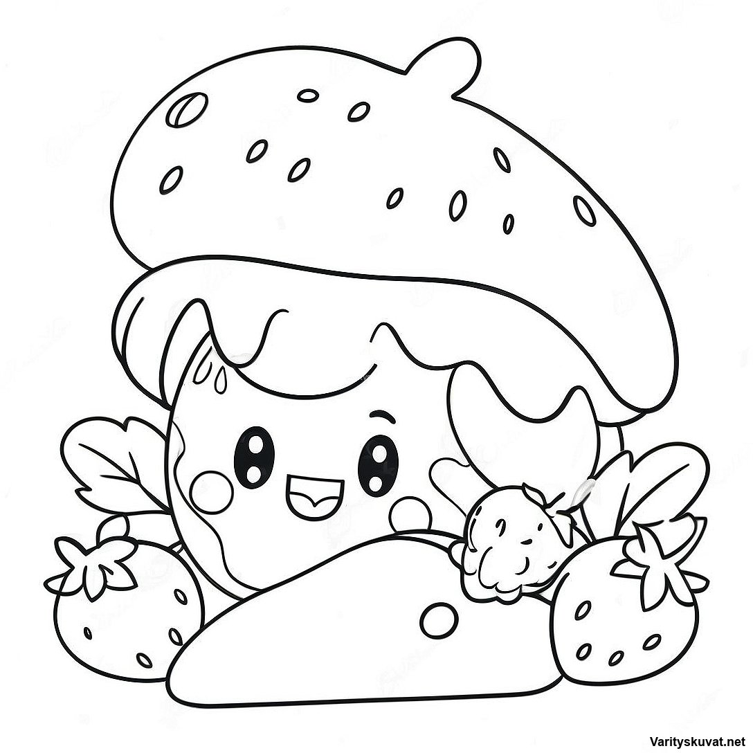 Lataa tulostettava PDF Mansikkakakku Jättimäisen Mansikan Kanssa Värityskuva