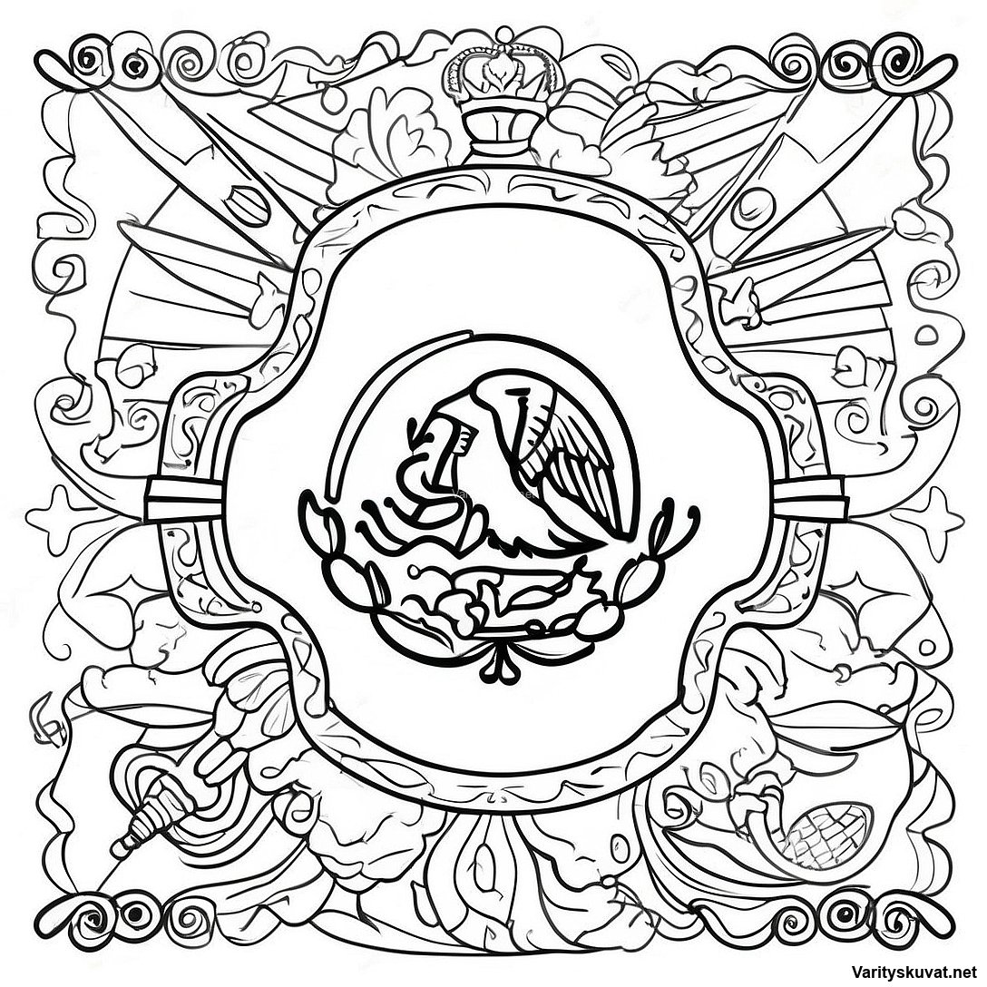 Lataa tulostettava PDF Meksikon Lippu Symboleilla Värityssivu