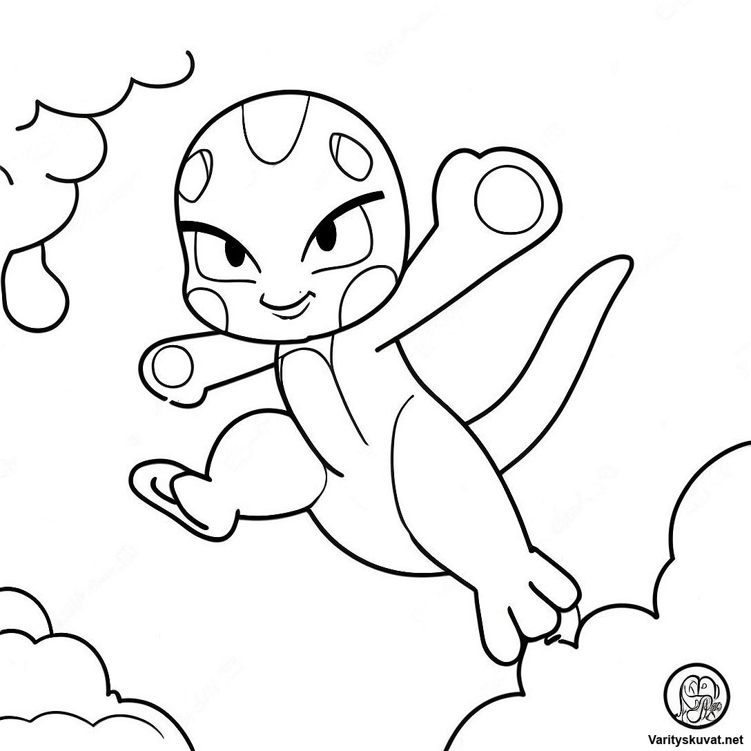 Lataa tulostettava PDF Mewtwo Lentämässä Taivaalla Värityskuva