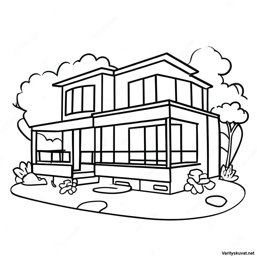 Lataa tulostettava PDF Moderni Talo Värityskuva