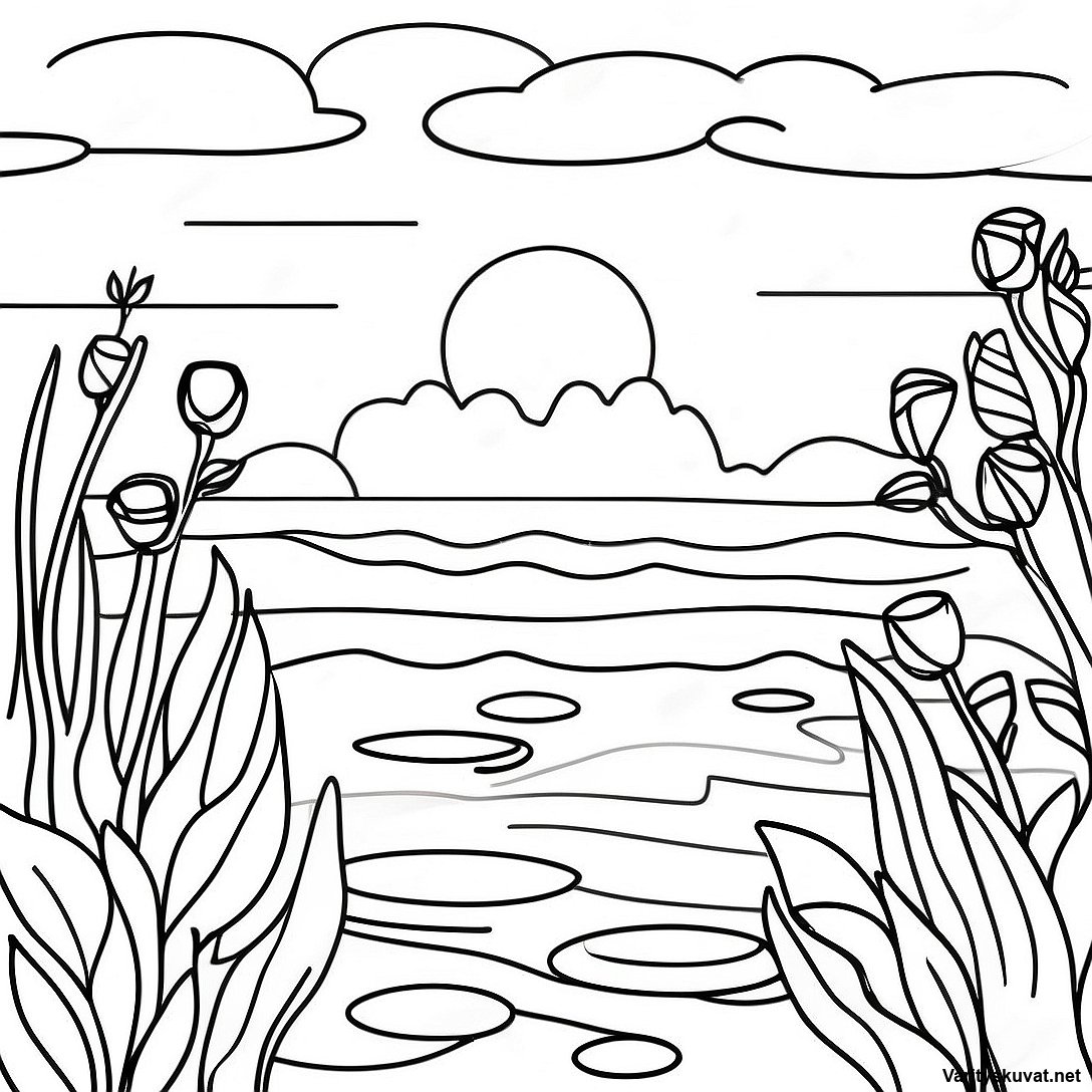Lataa tulostettava PDF Monetin Auringonnousu Maalaus Värittämissivu