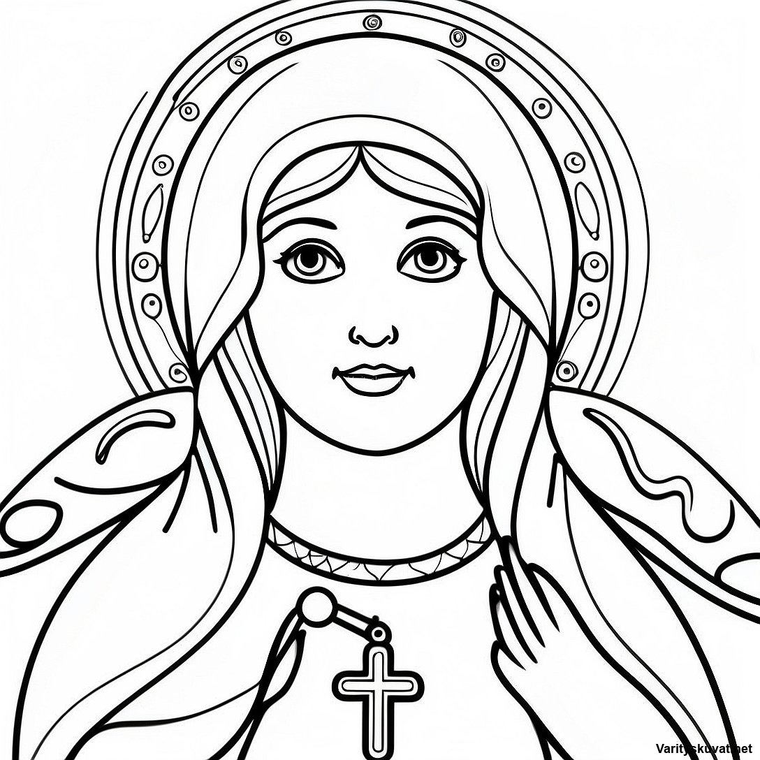 Lataa tulostettava PDF Neitsyt Maria Pitämässä Rukousnauhaa Värityskuva