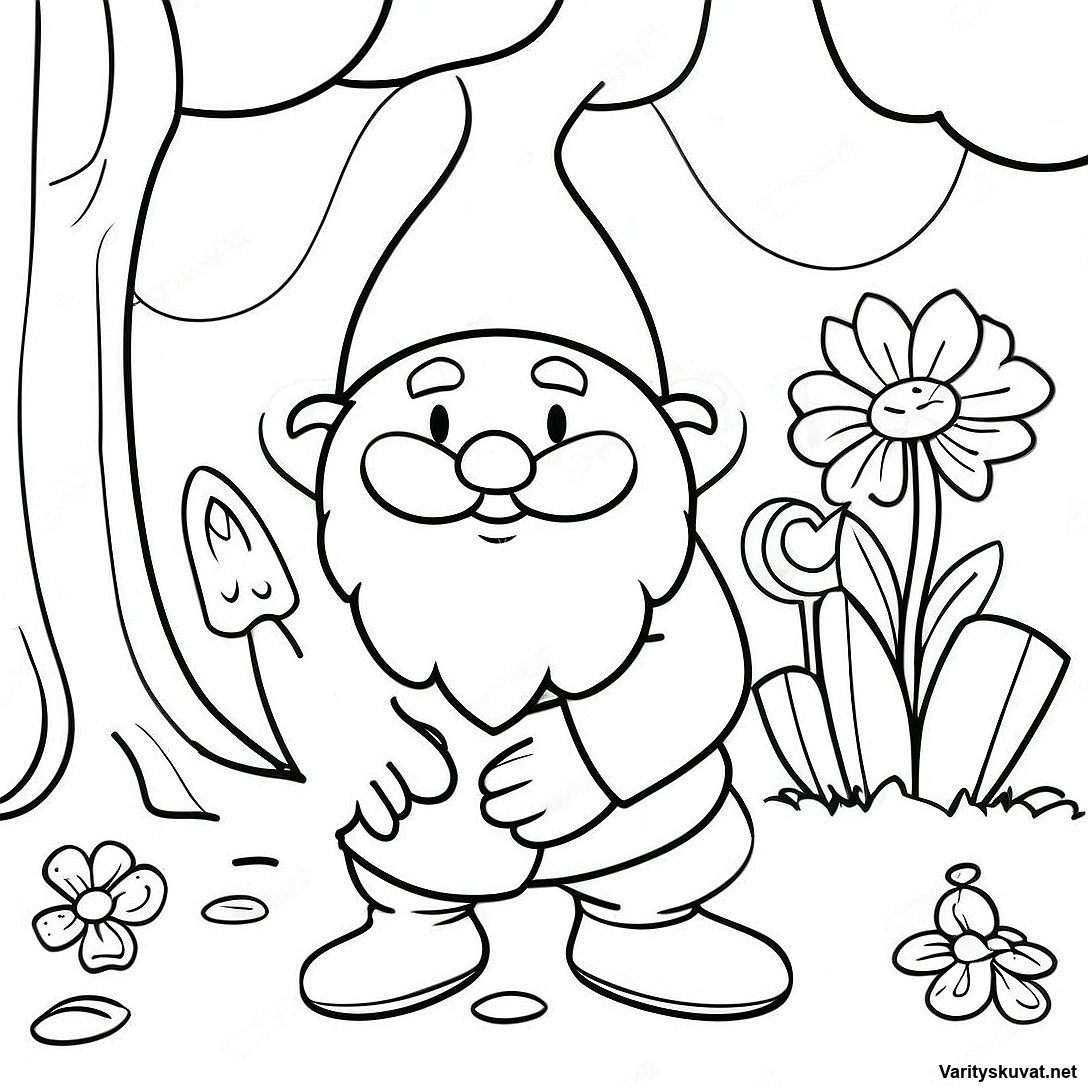 Lataa tulostettava PDF Omapäinen Puutarhatonttu Värityskuva