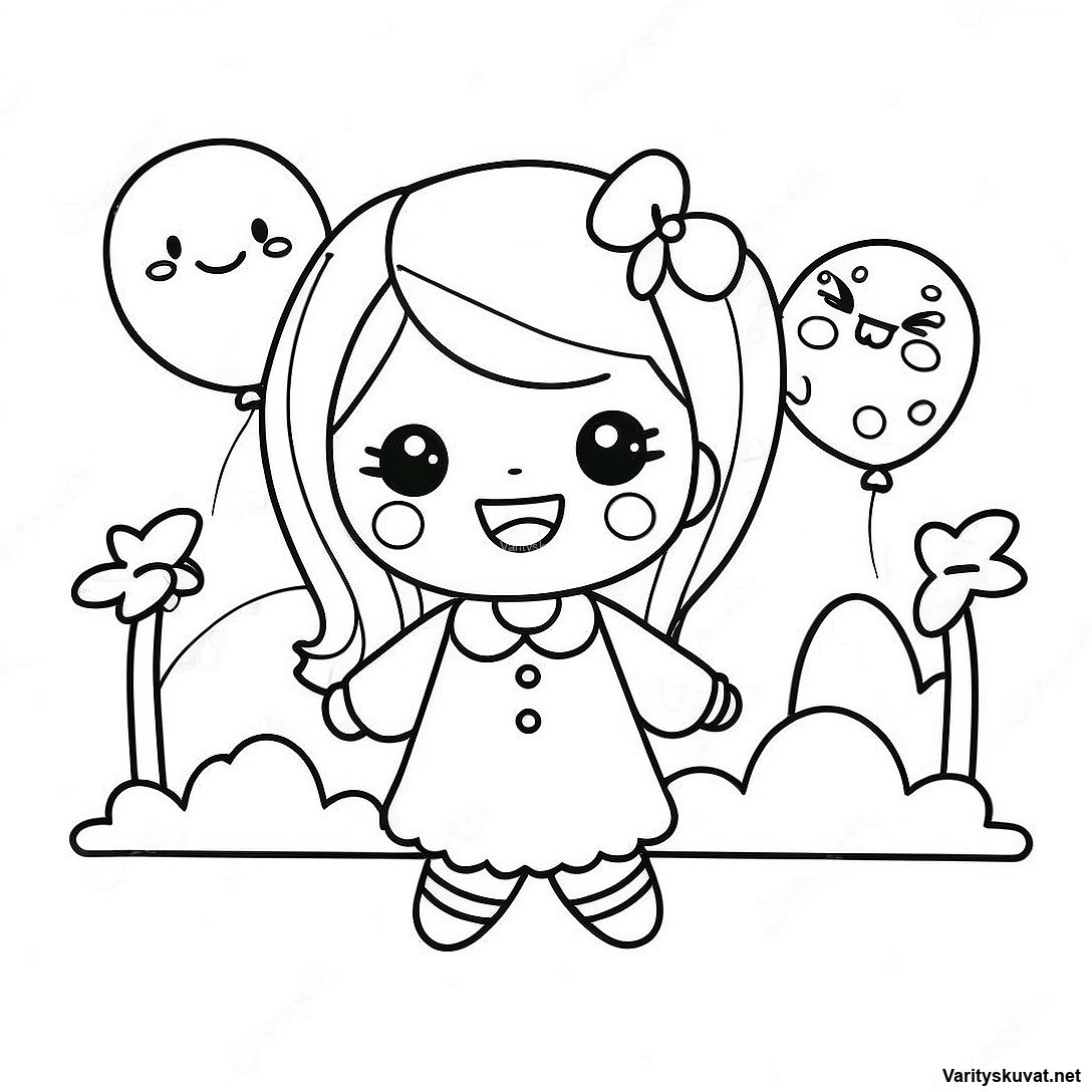 Onnellinen Kawaii Tytto Ilmapallojen Kanssa Varityskuva