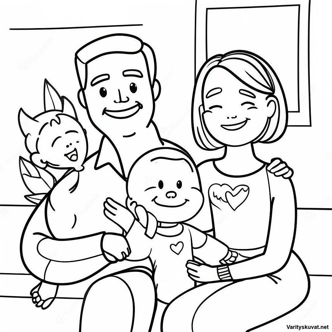Lataa tulostettava PDF Onnellinen Perhe Yhdessä Värityssivu
