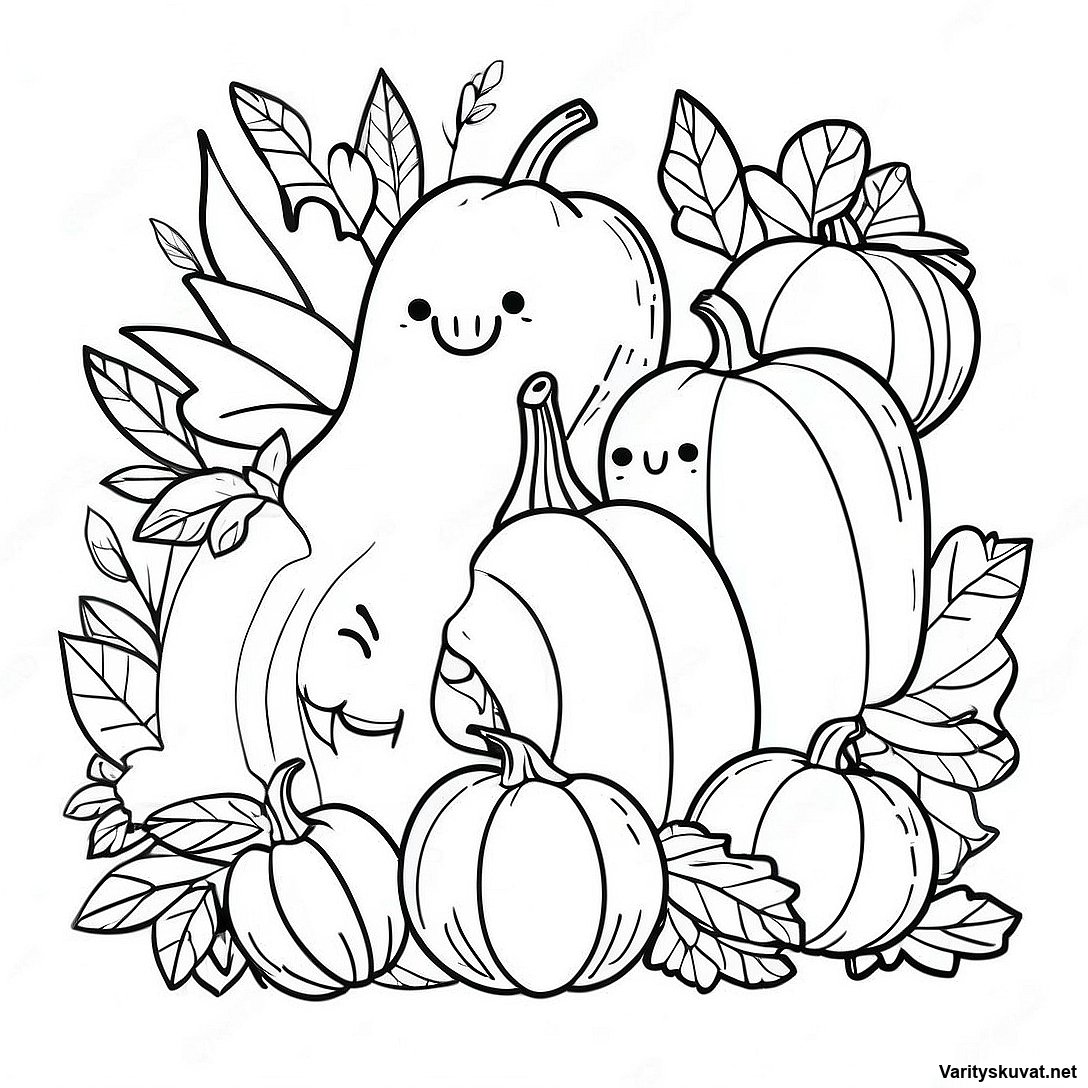 Iloinen kurpitsapellon värityskuva