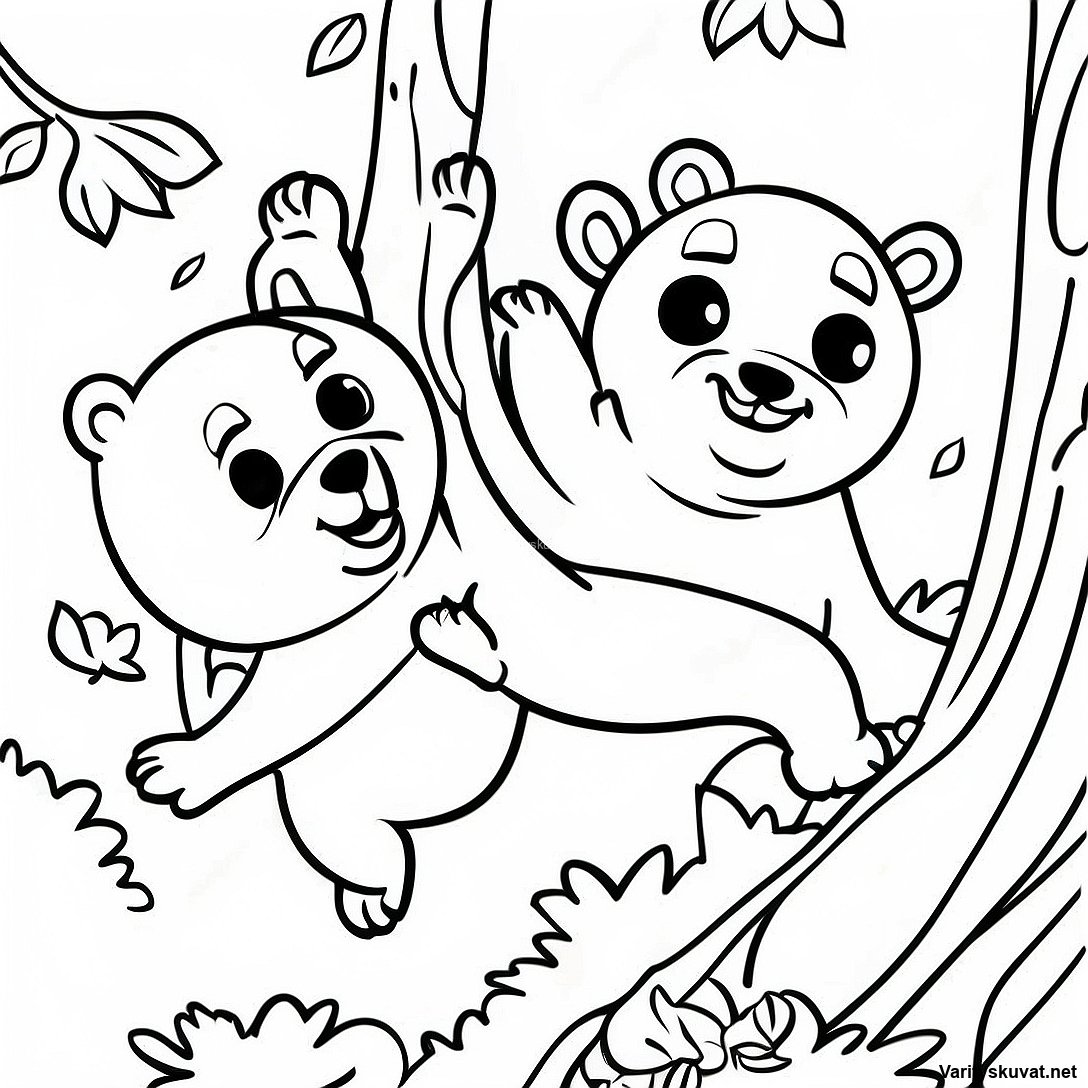 Lataa tulostettava PDF Pandat Kiipeämässä Puihin Värityskuva