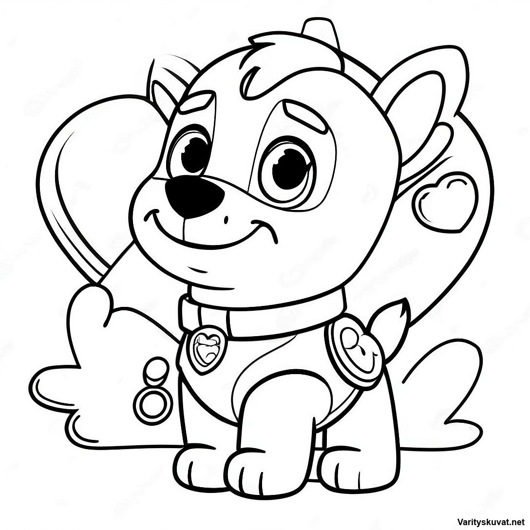 Lataa tulostettava PDF Paw Patrolin Ystävänpäivän Värityskuva