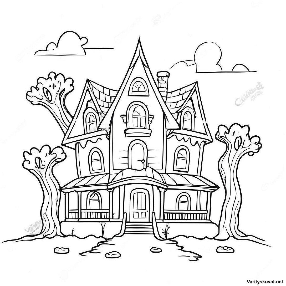 Lataa tulostettava PDF Pelottava Monsteritalo Värityskuva