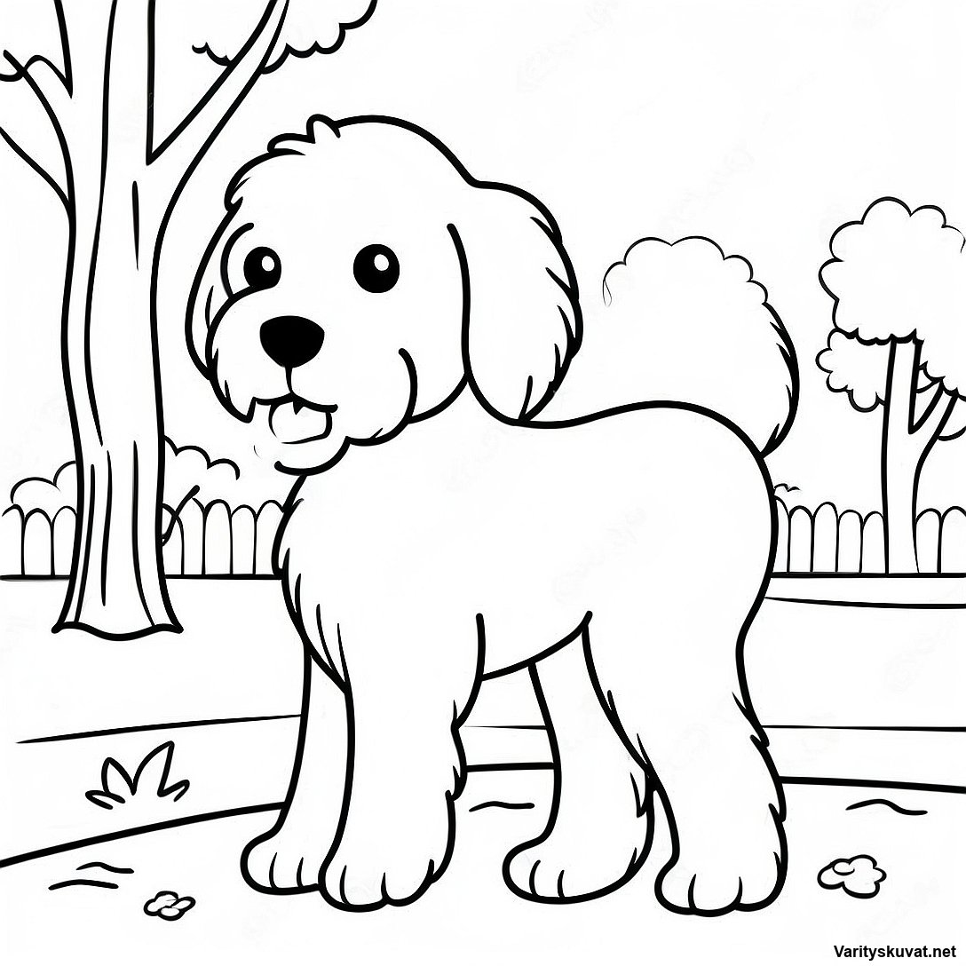 Lataa tulostettava PDF Pörröinen Goldendoodle Puistossa Värittämissivu
