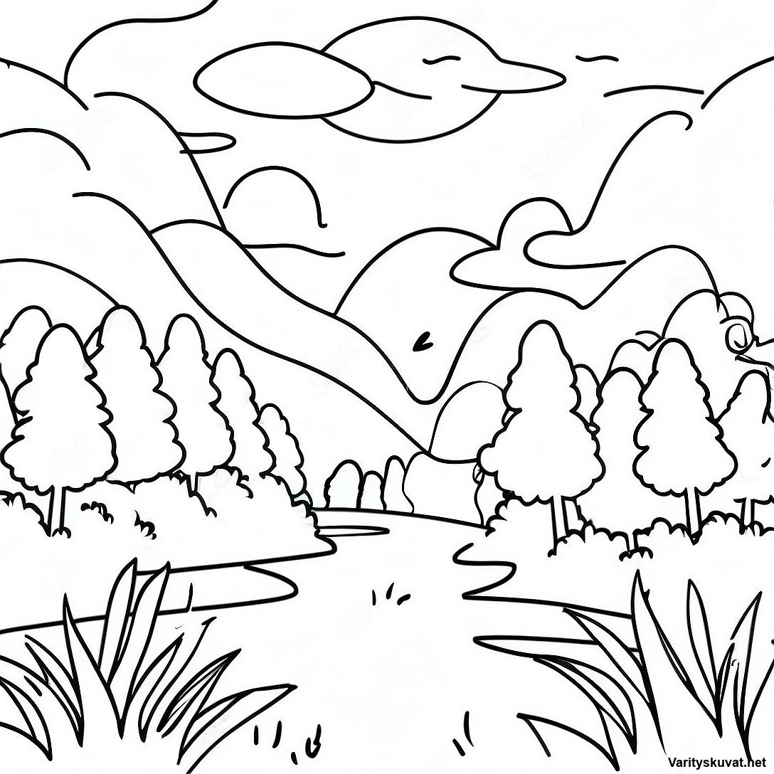 Lataa tulostettava PDF Rauhallinen Maisema Värityskuva