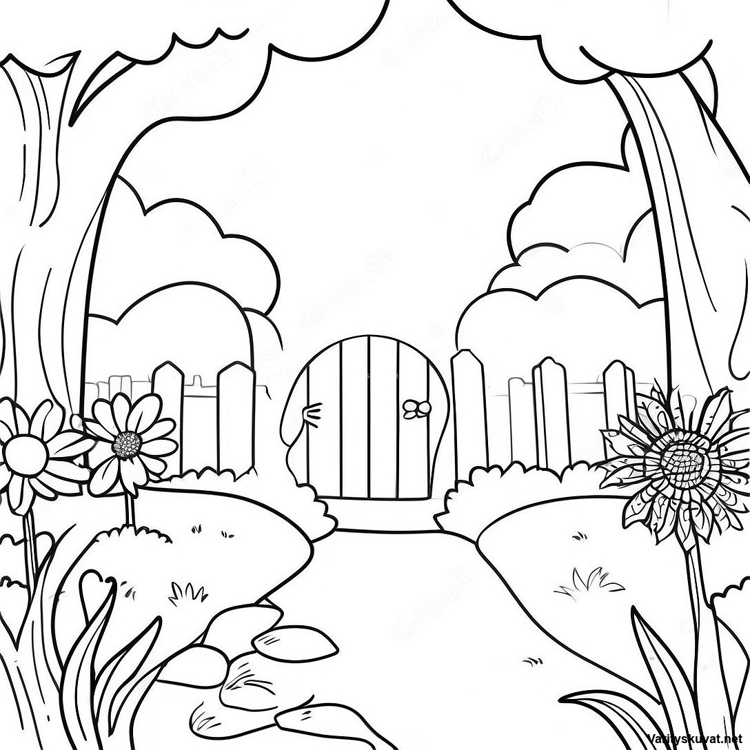 Lataa tulostettava PDF Rauhallinen Puutarha Värityskuva