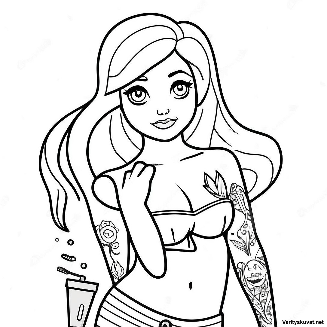 Lataa tulostettava PDF Rohkea Tatuoitu Ariel Värityssivu