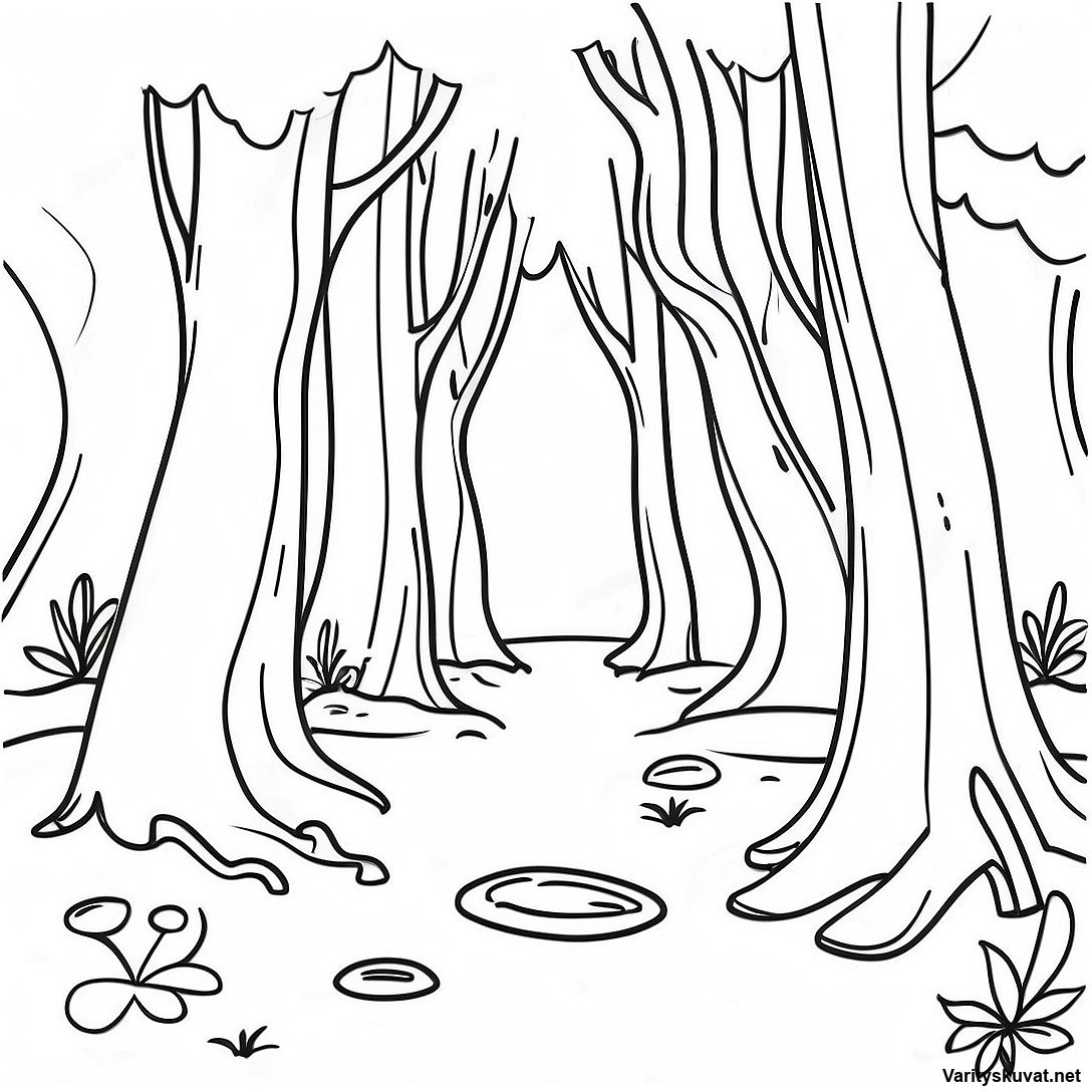 Lataa tulostettava PDF Salaperäinen Tumma Metsä Värittämislehti