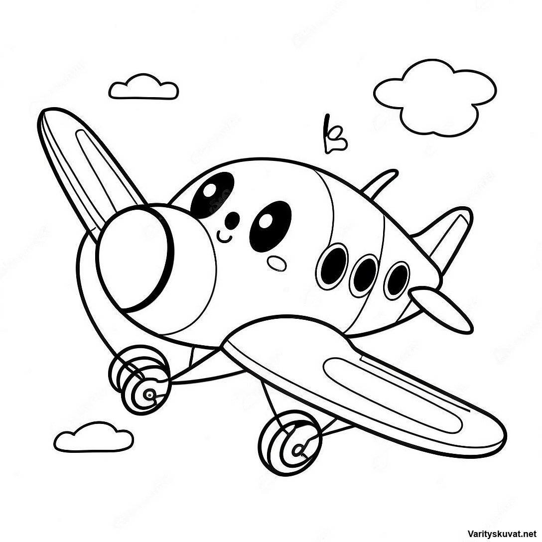 Lataa tulostettava PDF Sarjakuvamainen Lentokone Iloisella Naamalla Värityskuva
