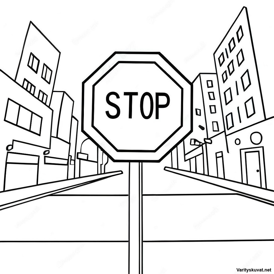 Lataa tulostettava PDF Sarjakuvamainen Pysäytysmerkki Kaupungissa Värityskuva