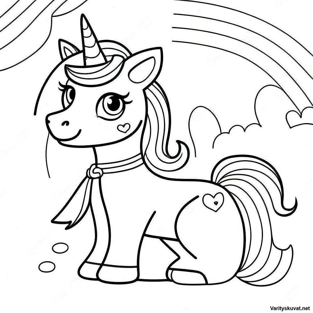 Fantasia Alicorn sateenkaaren maisemassa värittämissivu