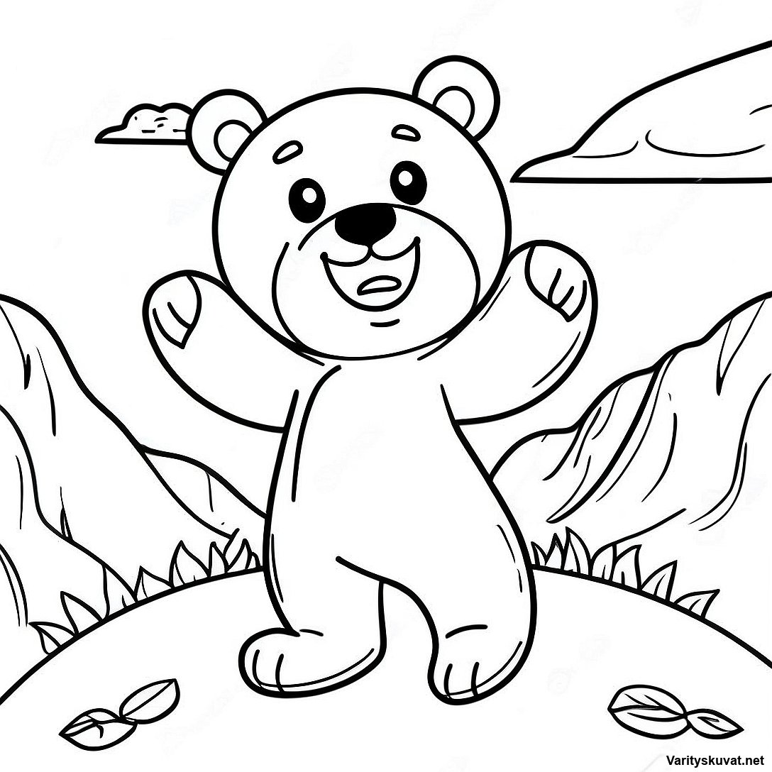 Lataa tulostettava PDF Seikkailunhaluinen Hei Karhu Värityskuva