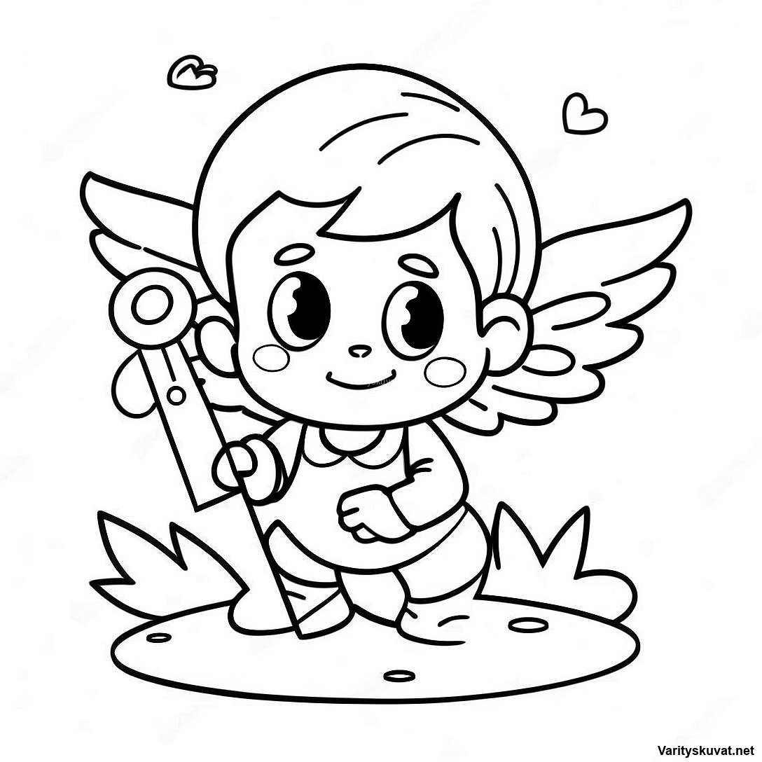 Lataa tulostettava PDF Seikkailunhaluinen Poika Cupidon Jousella Värityskuva