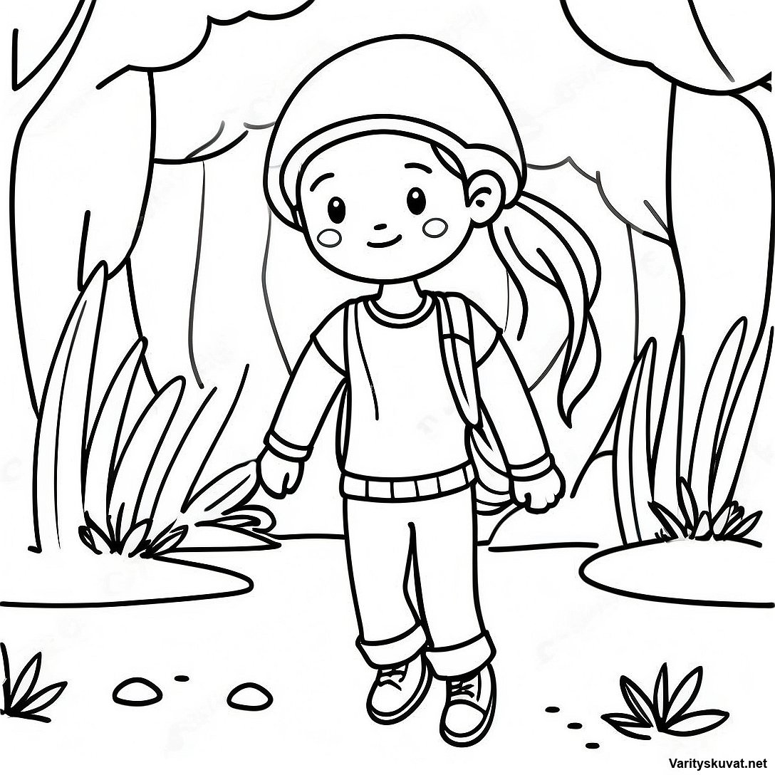 Seikkailunhaluinen Tyttö Luontoa Tutkimassa Värittämissivu