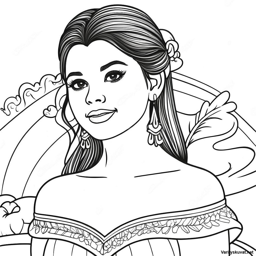 Lataa tulostettava PDF Selena Gomez Disney-Prinsessana - Väritettävä Sivu