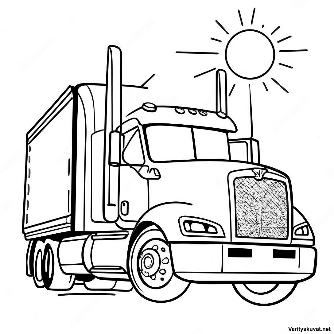 Lataa tulostettava PDF Siro Puoliperävaunu Auringonlaskussa Värittämissivu