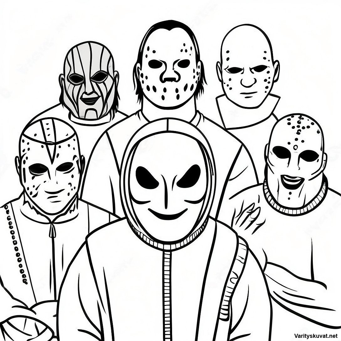 Lataa tulostettava PDF Slipknot-Yhtyeen Jäsenet Värityskuva