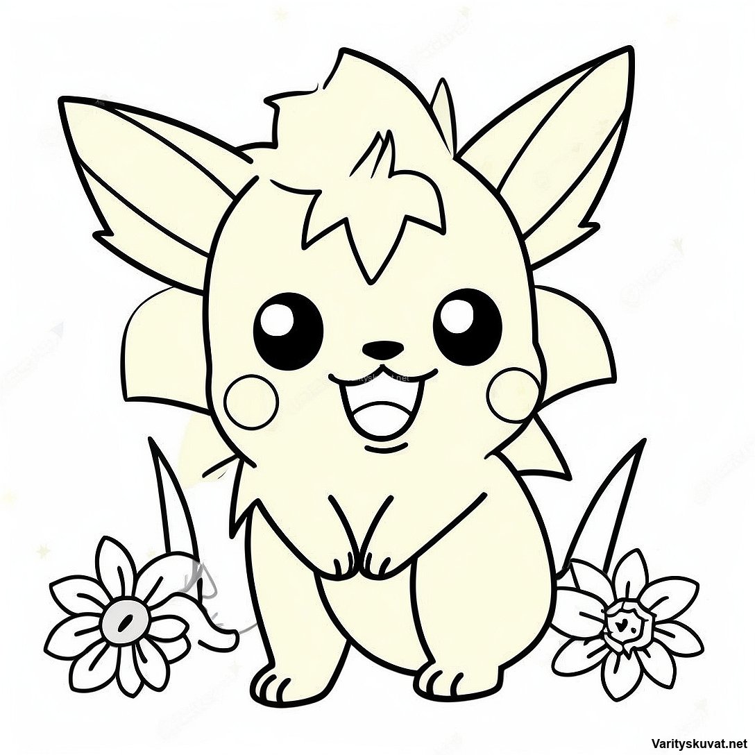 Iloinen Pikachu Kukka-alueella Värityskuva