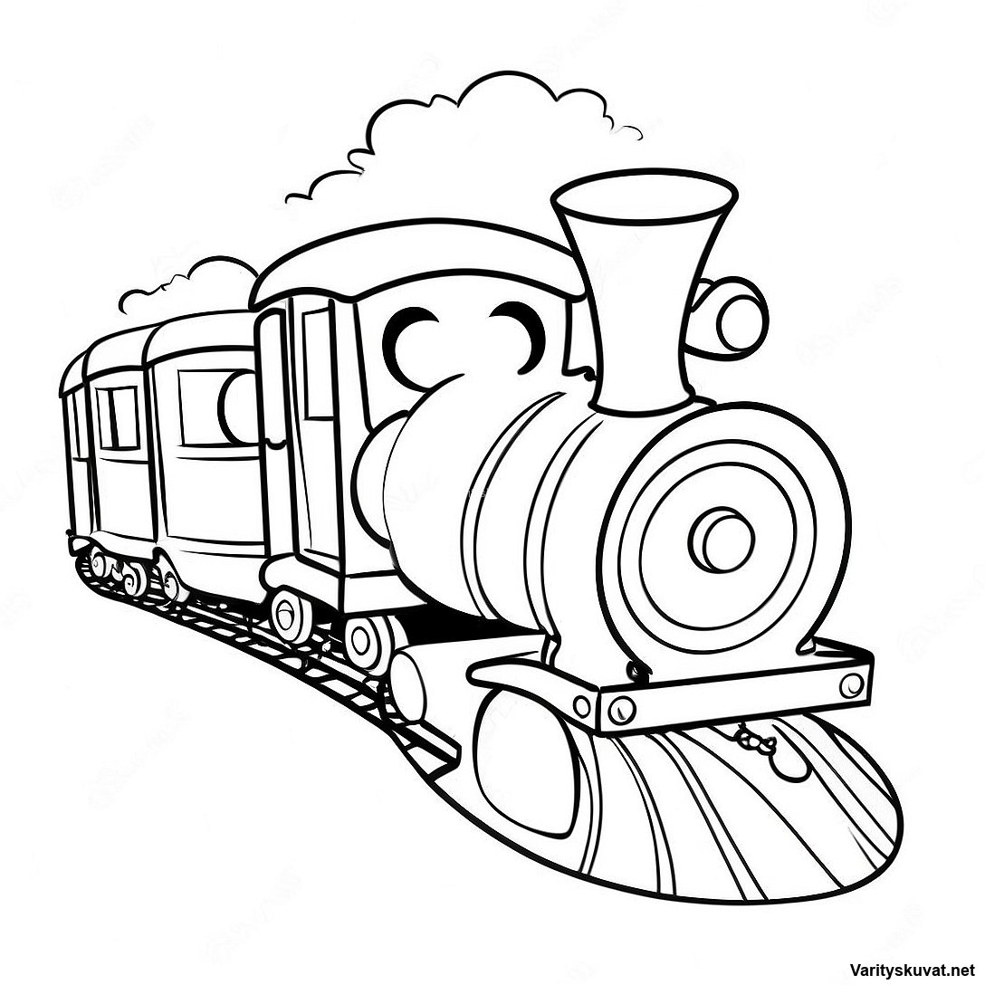 Iloinen juna hymyilevillä kasvoilla värityskuva