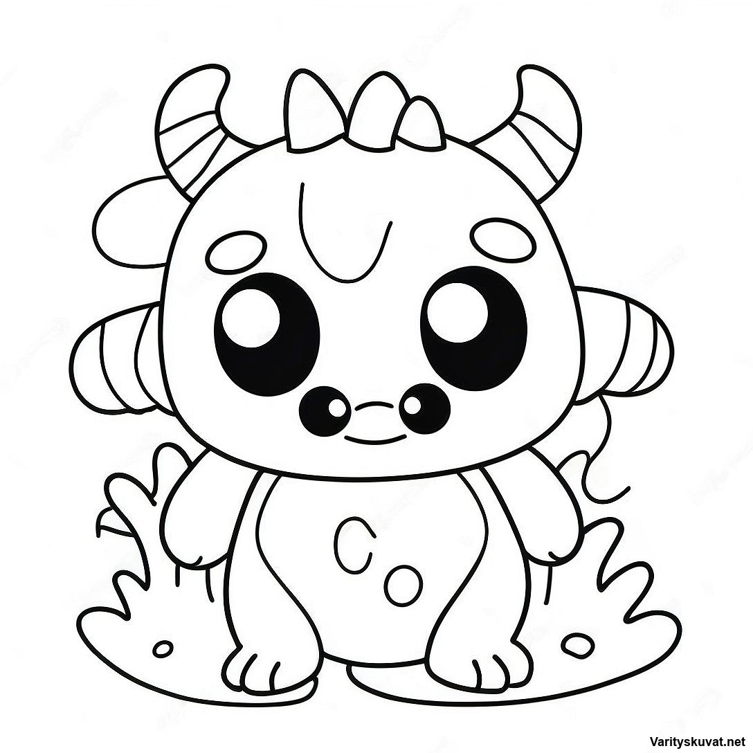 Lataa tulostettava PDF Söpö Karmiva Kawaii Monsteri Värittämissivu