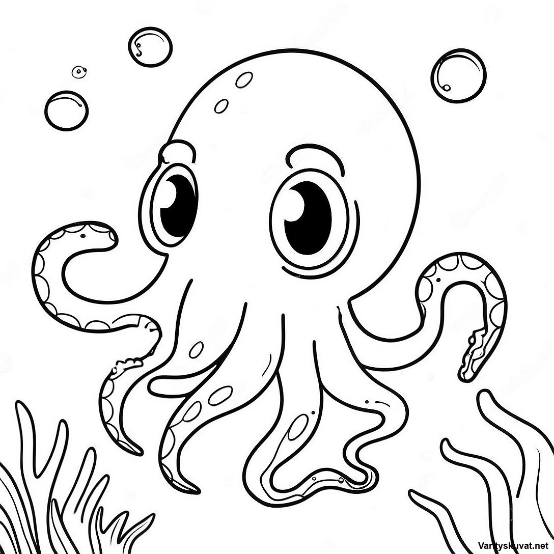 Lataa tulostettava PDF Söpö Kraken Vedenalainen Värittämissivu