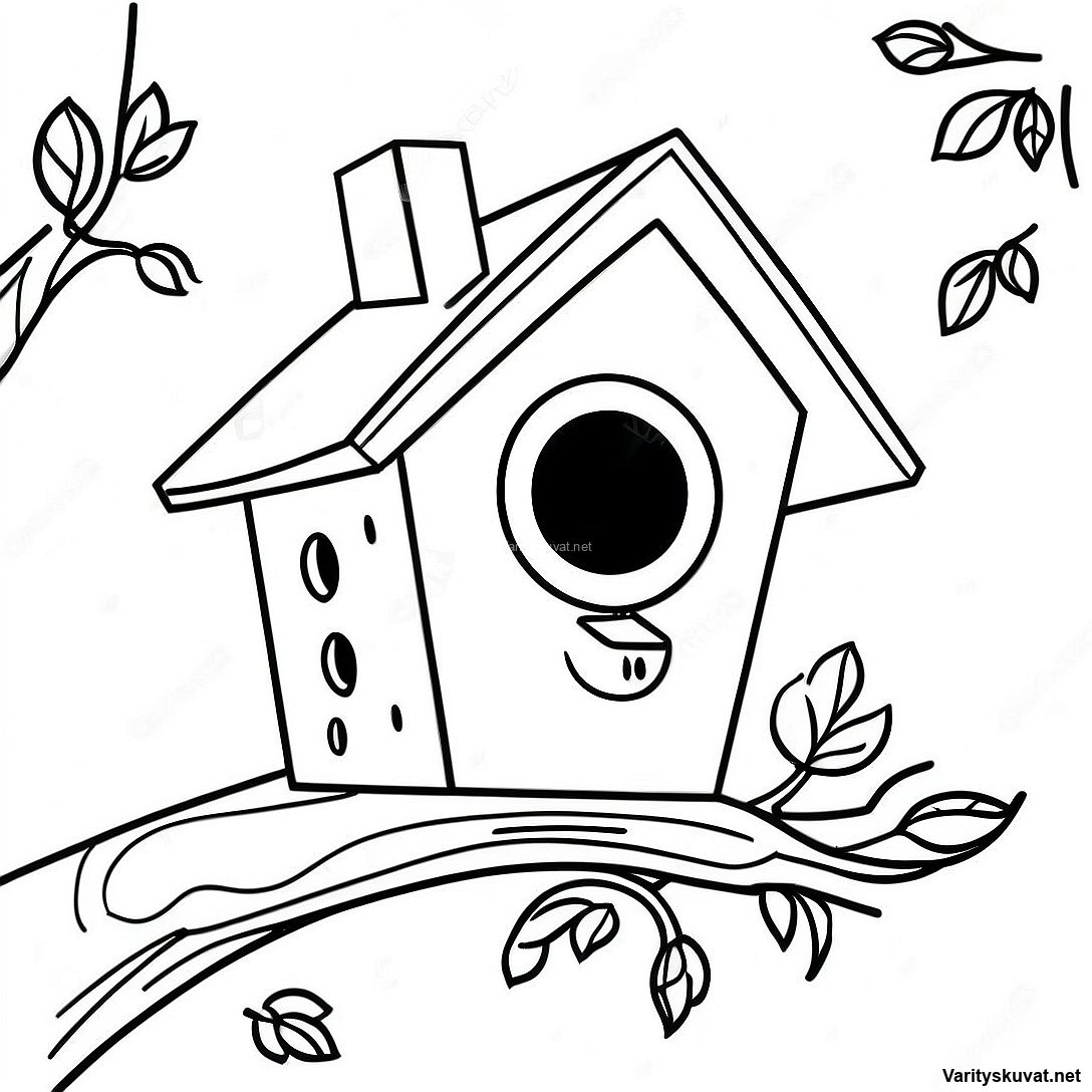 Lataa tulostettava PDF Söpö Linnunpönttö Puussa Värityskuva