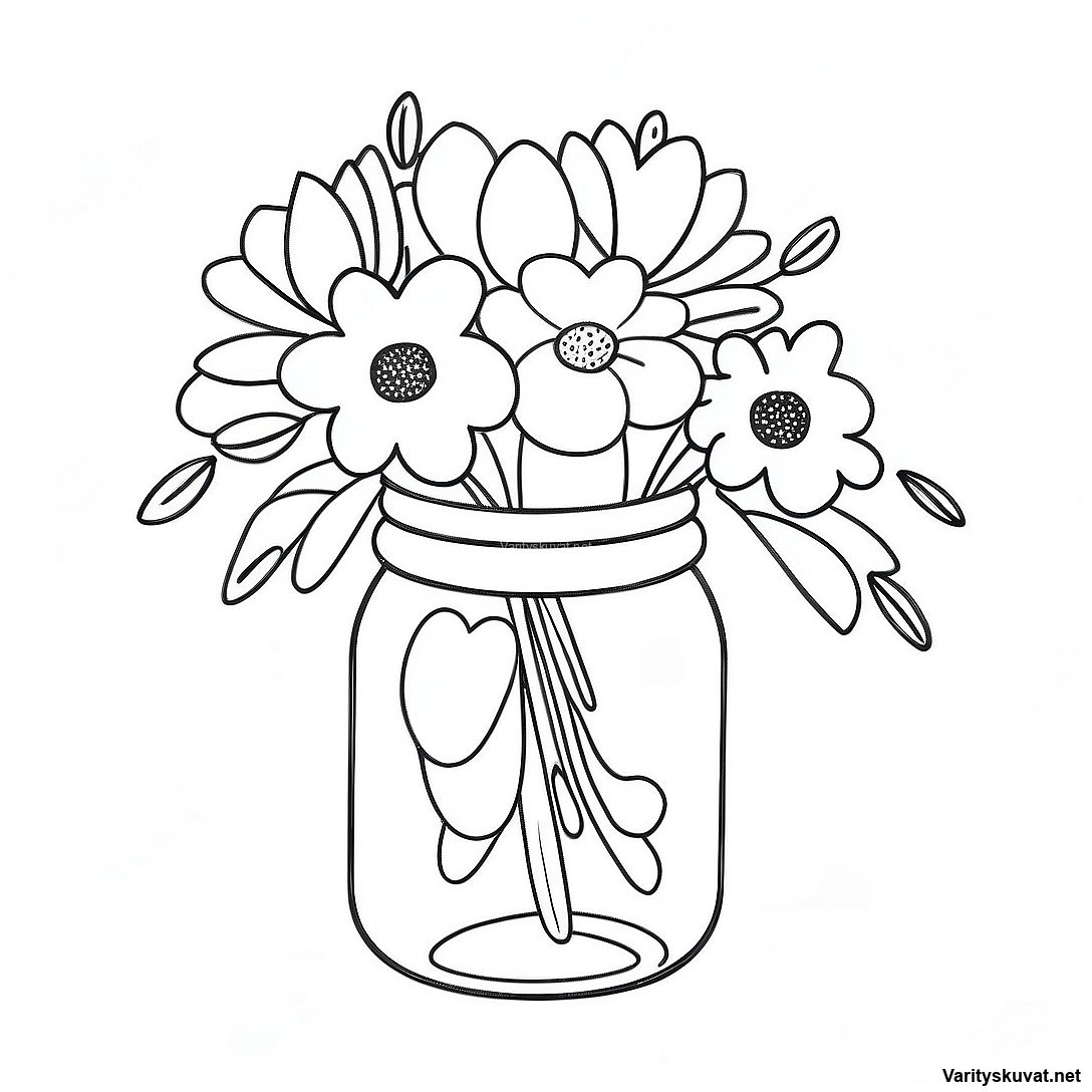 Lataa tulostettava PDF Söpö Mason-Purkki Kukkien Kanssa Värityskuva