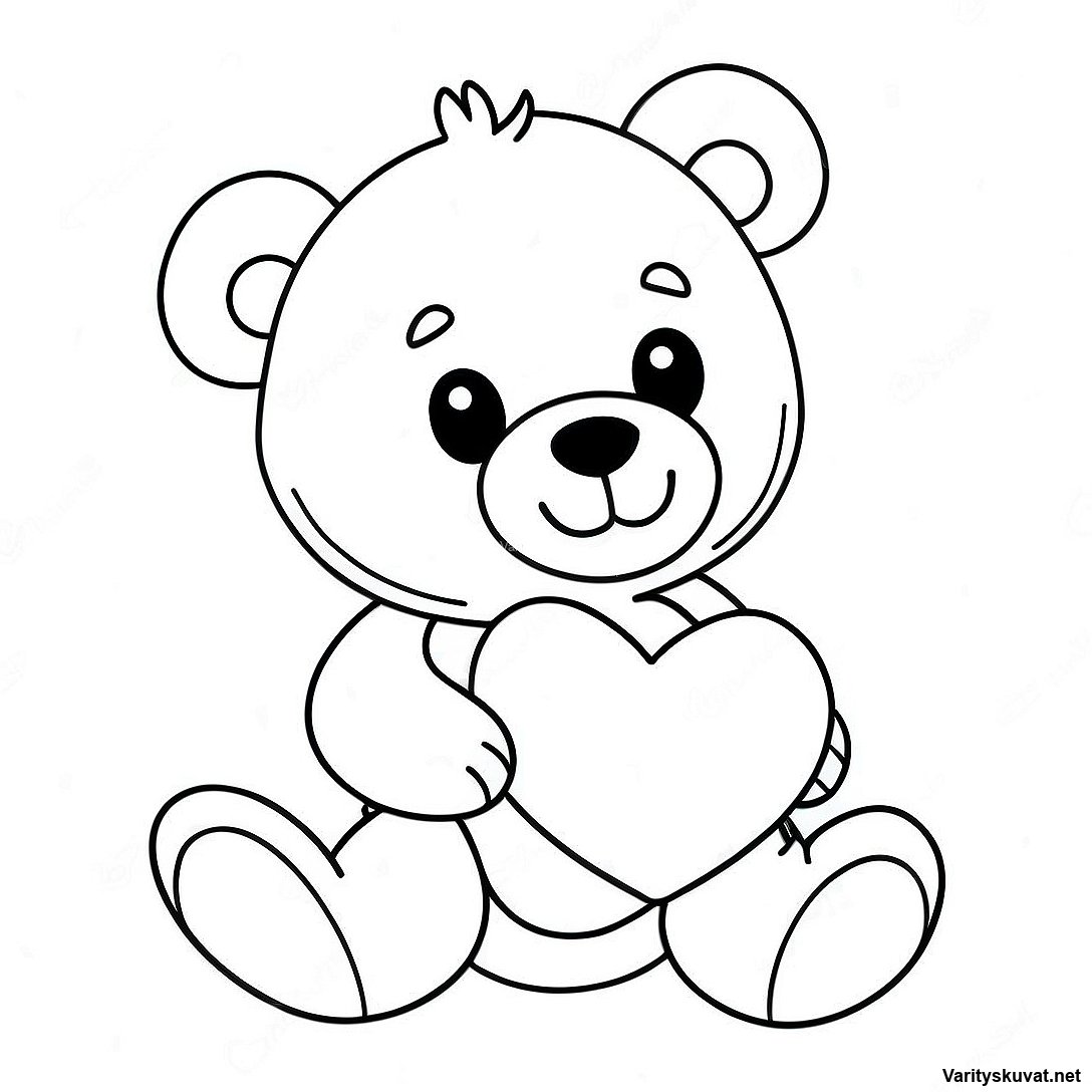 Lataa tulostettava PDF Söpö Nallekarhu Sydämen Kanssa Värityskuva