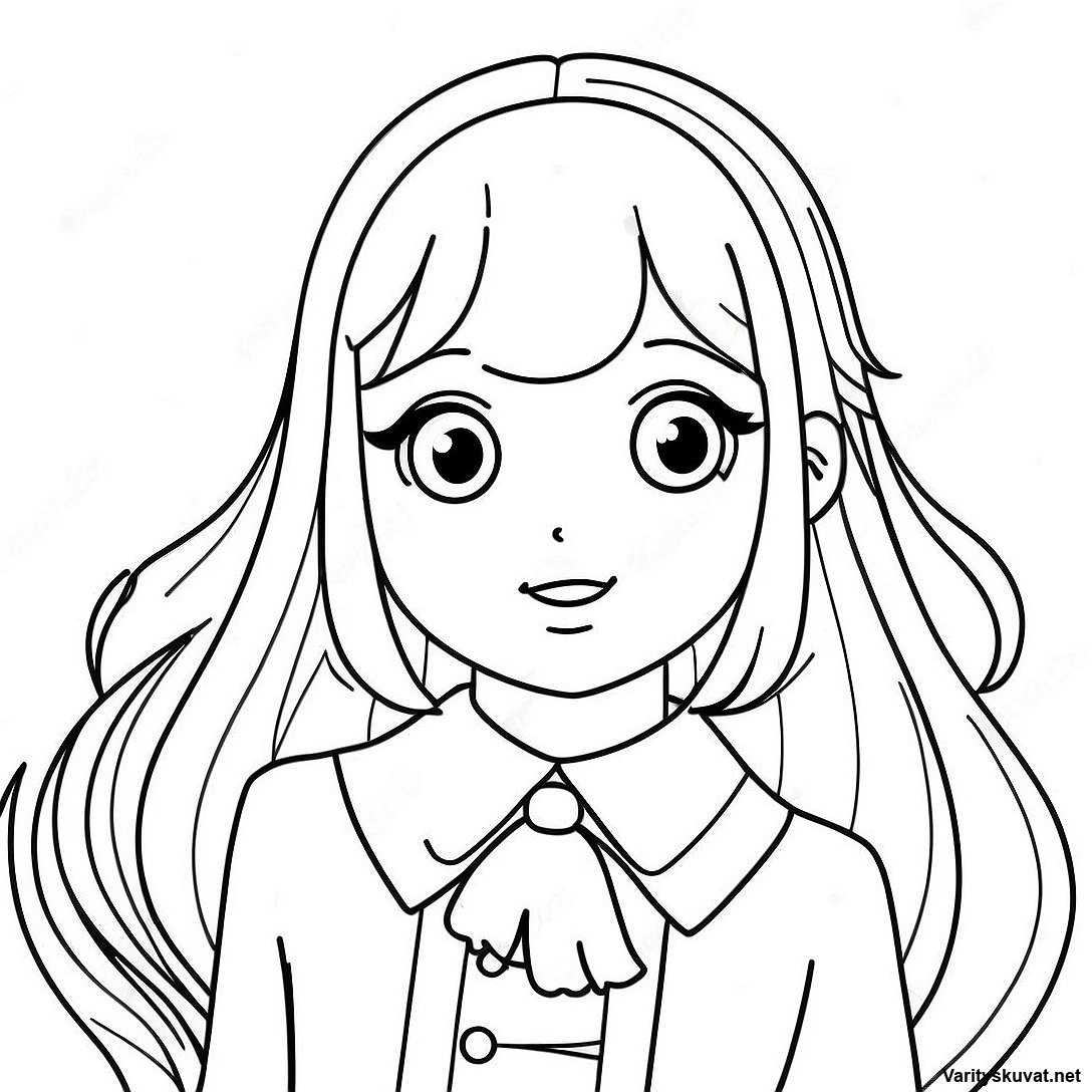 Lataa tulostettava PDF Söpö Pitkätukkainen Anime-Tyttö Värityskuva