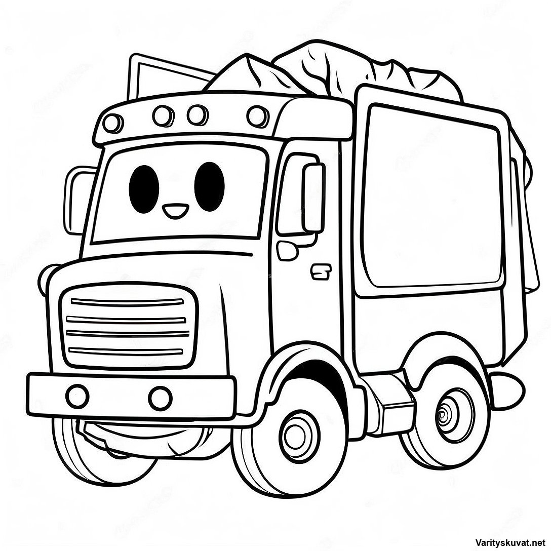 Lataa tulostettava PDF Söpö Sarjakuvajäteauto Värityskuva