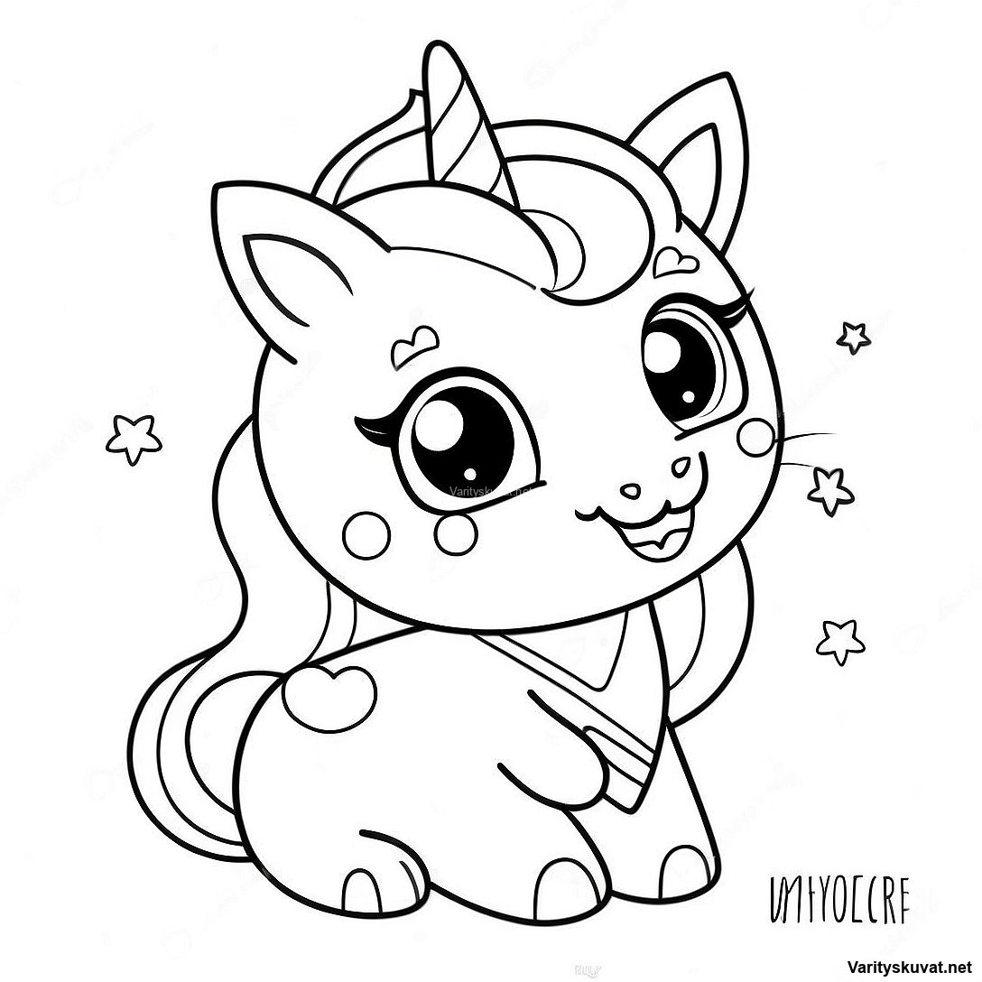 Lataa tulostettava PDF Söpö Yksisarvinen Kissa Kimalluksilla