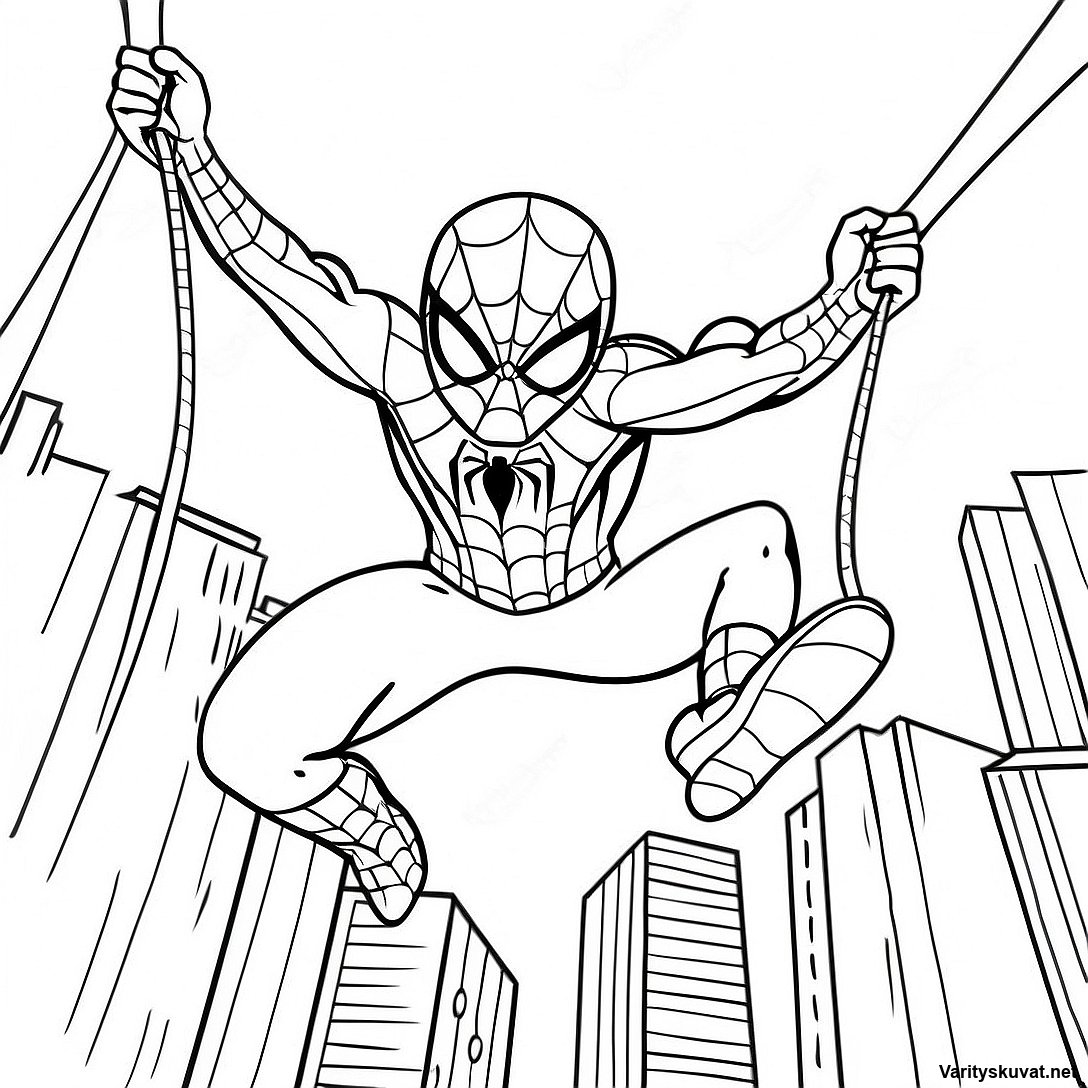 Lataa tulostettava PDF Spiderman Heiluu Kaupungin Yli Värityskuva