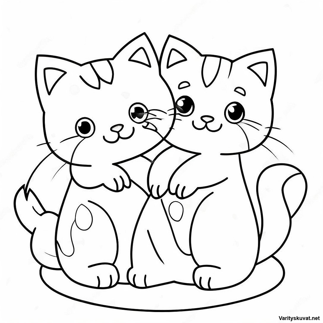Lataa tulostettava PDF Suloiset Kissanpennut Leikkimässä Värityskuva