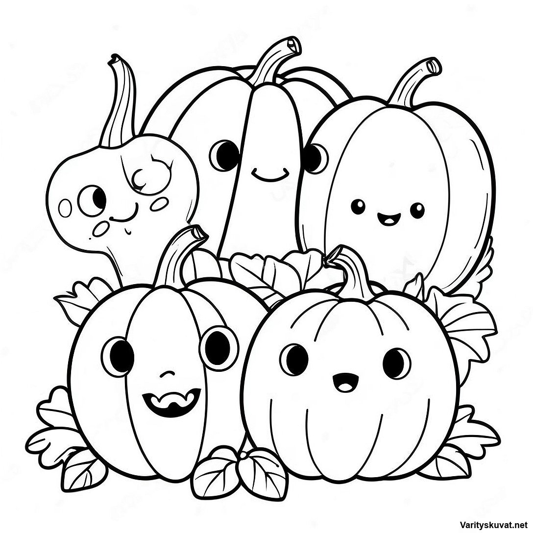 Lataa tulostettava PDF Suloiset Kurpitsakaverit Värityskuva